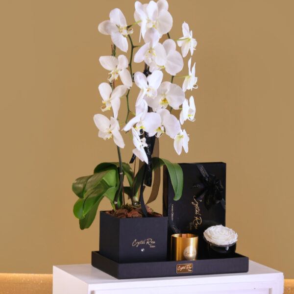 If you’re thinking of getting a flower box for someone special, you’re amazing. Explore our elegant boxes with different colors of orchids. Consist of Delicious Luxury Chocolate, comes with scented candle