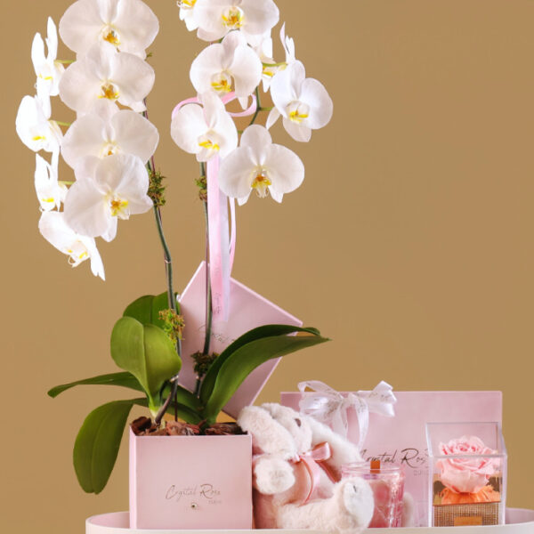If you’re thinking of getting a flower box for someone special, you’re amazing. Explore our elegant boxes with different colors of orchids. Consist of Delicous Luxury Chocolate, comes with scented candle and with Small Plushy Teddy