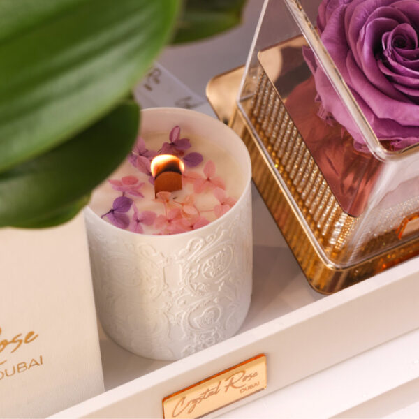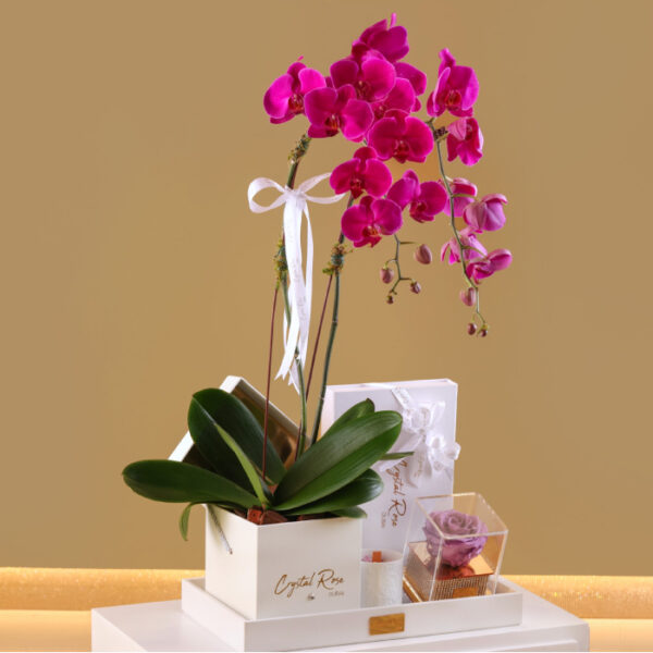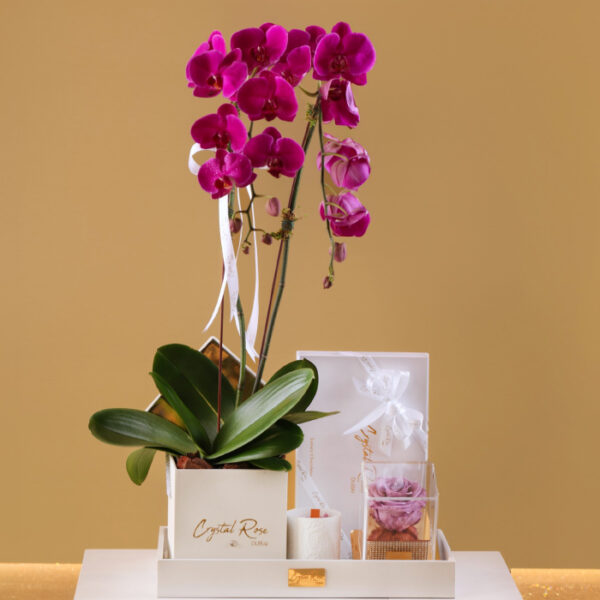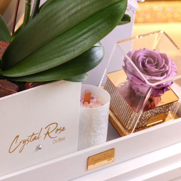 If you’re thinking of getting a flower box for someone special, you’re amazing. Explore our elegant boxes with different colors of orchids. Consist of Delicious Luxury Chocolate, comes with scented candle