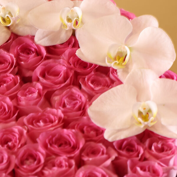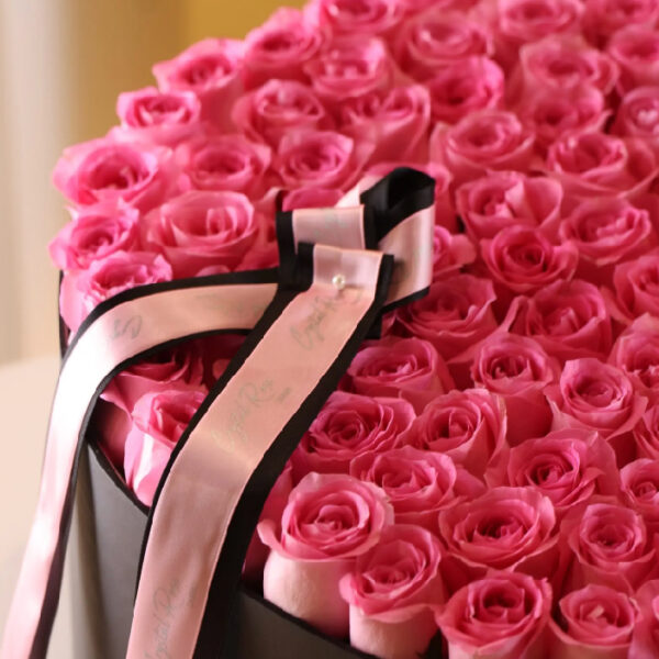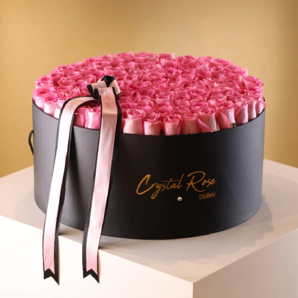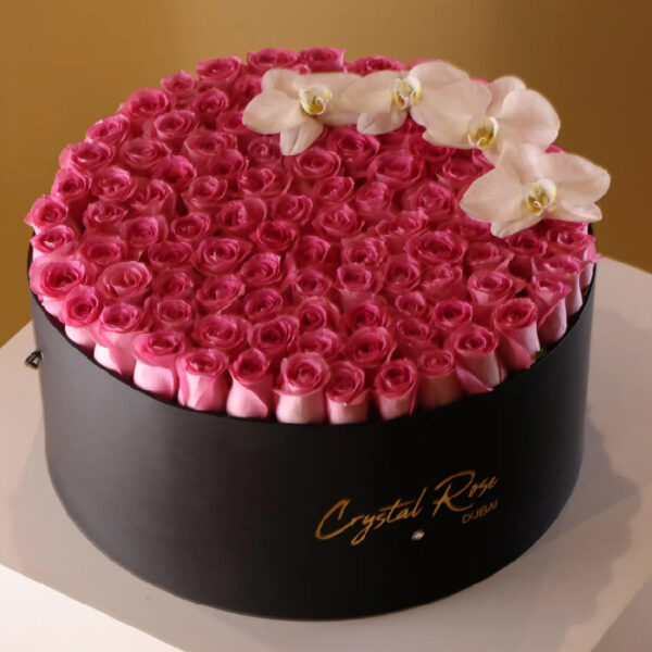 Dive into luxury with our deep Pink with spherical box, which has 120-140 roses in a stunning display of elegance and passion.