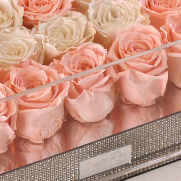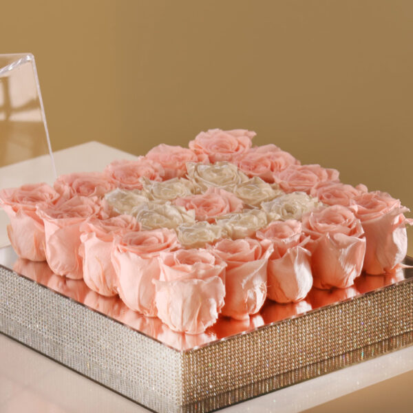Twenty-five perpetual roses have been expertly put in an amazing white circular velvet box to create this magnificent preserved rose box. In addition to representing beauty and eternal love, preserved roses are prized for their enduring freshness. The box’s outstanding and elegant design beautifully showcases these priceless, lovely flowers.